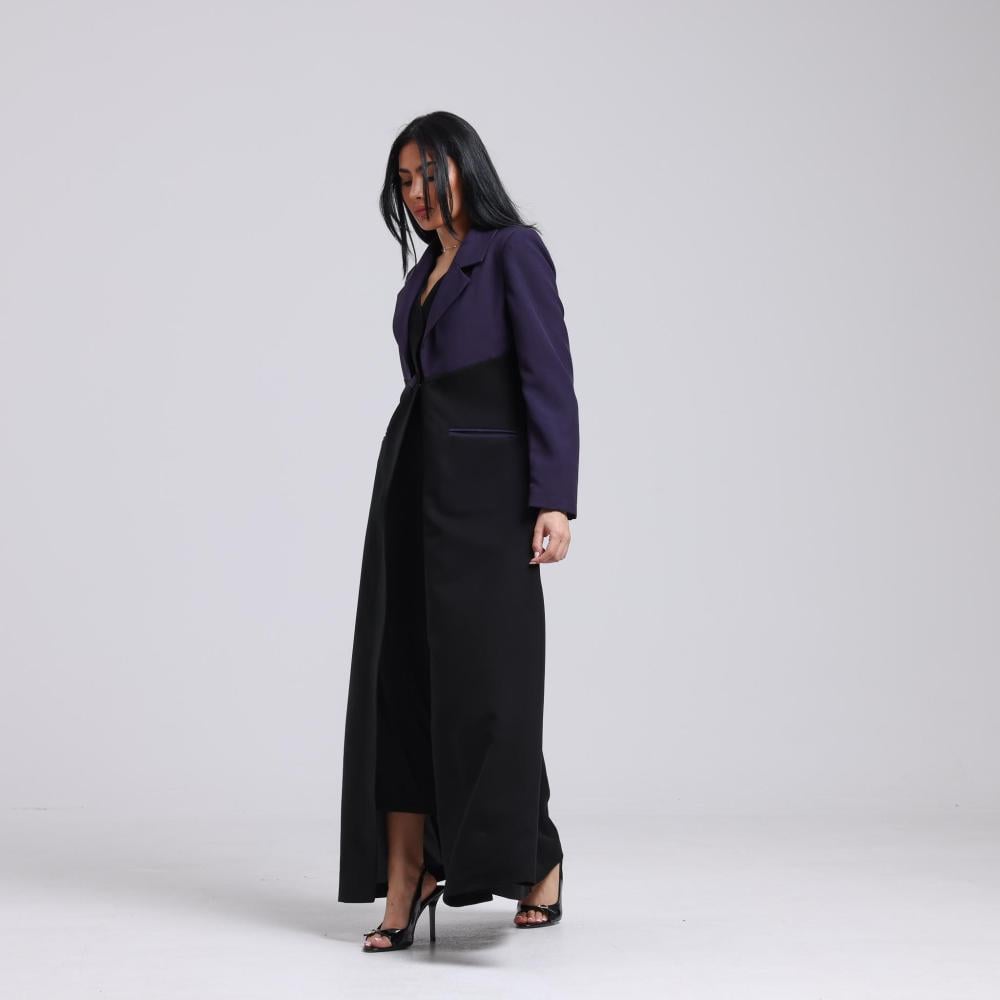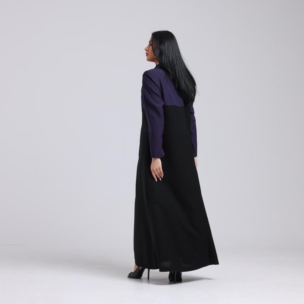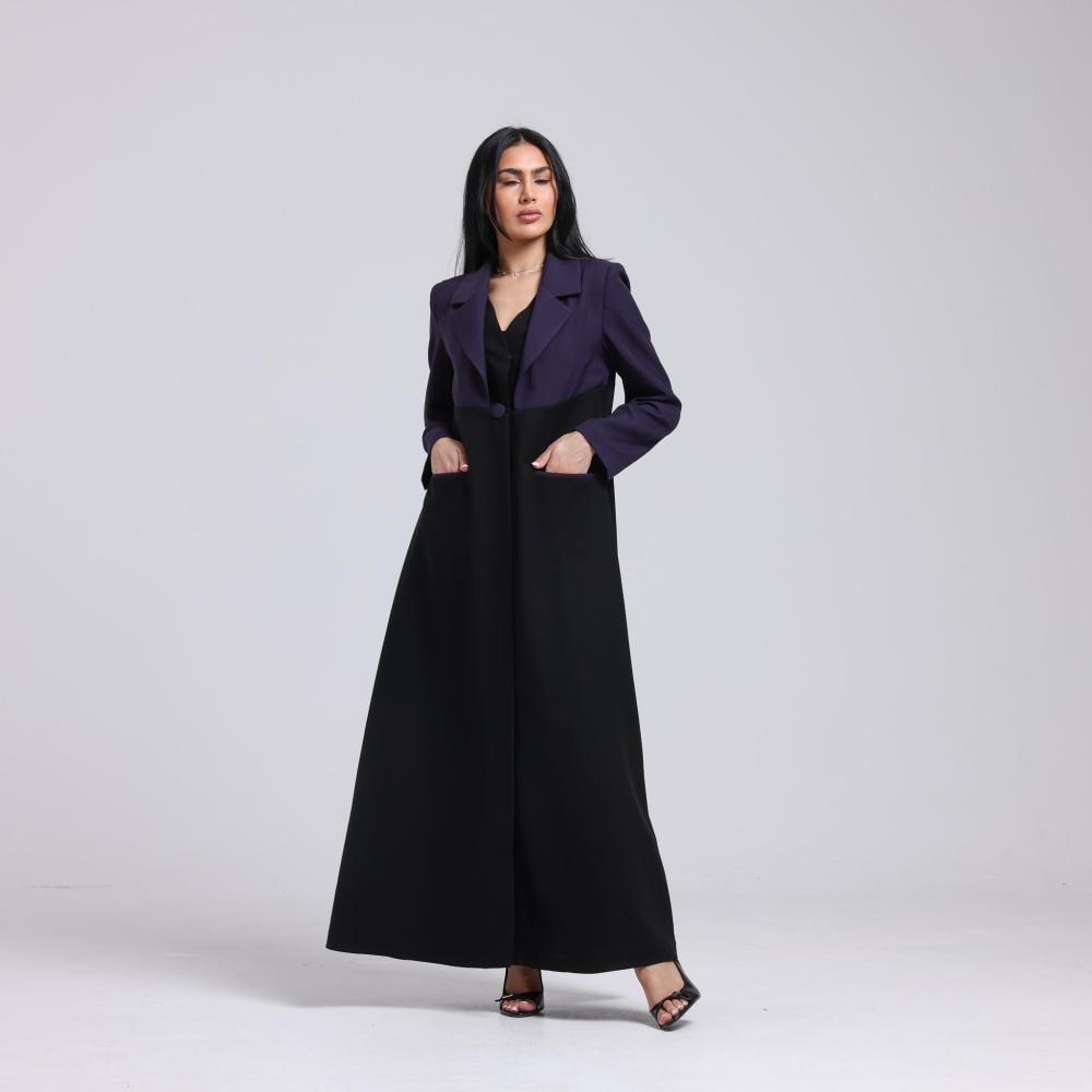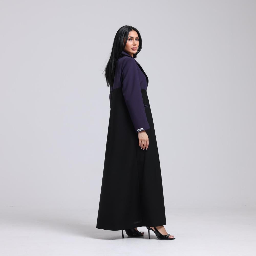 عباية بليزر بلون موف وأسود من قماش الكتان